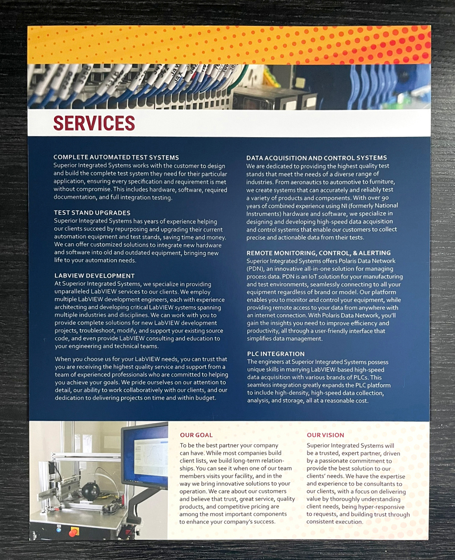 brochure into double-sided sales sheet, print and PDF: layout design, copy editing, some photography, print production, conversion to digital