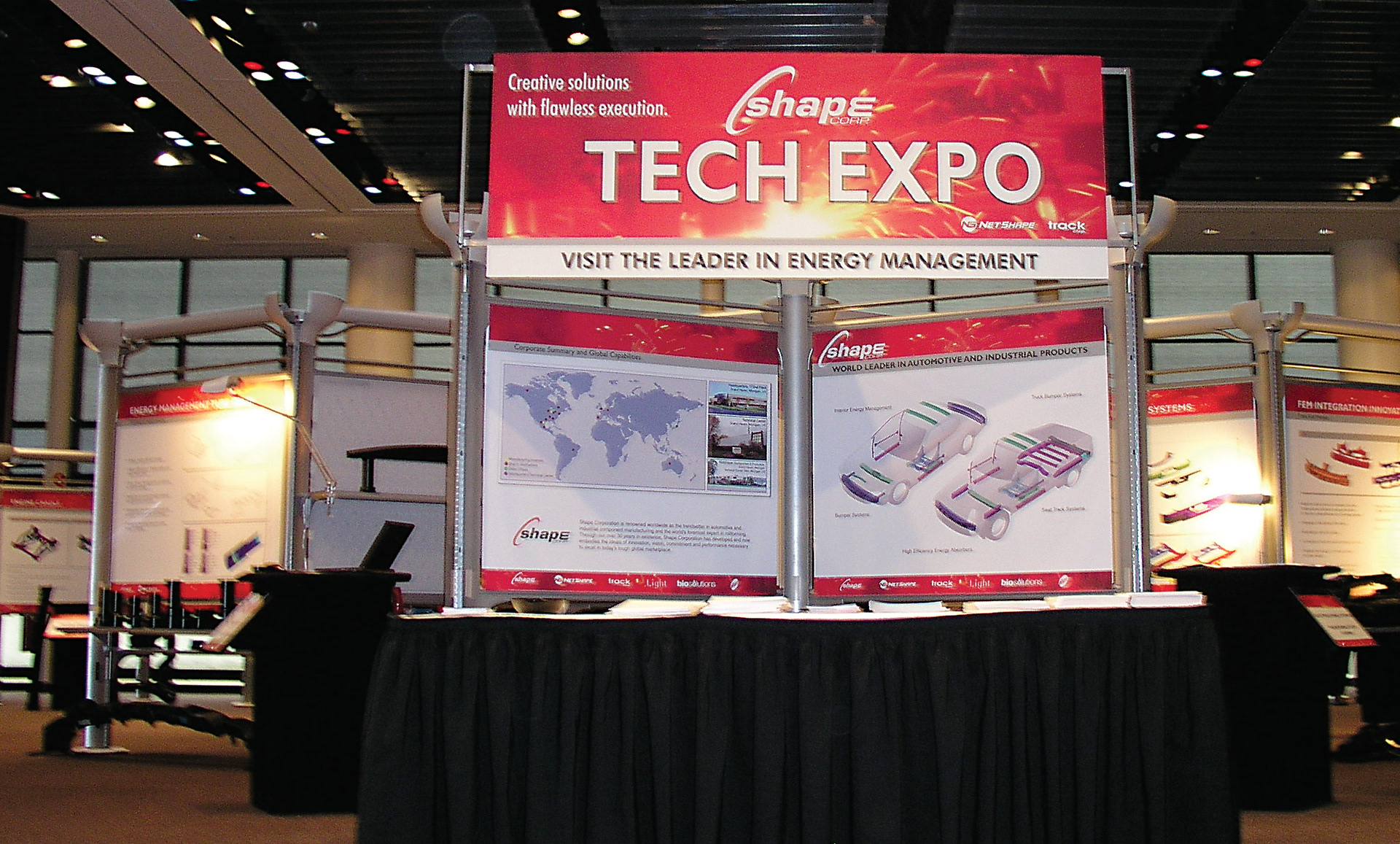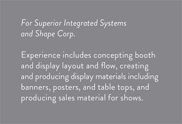 booth layout, display creation, poster + visual design and production, promotional sales material design and production